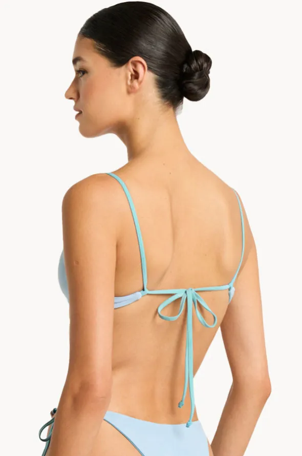 The Bond-Eye Bare Mika Reversible Crop in Cirrus/Moonstone features a bralette style, beading on straps, tie back, and is best suited to A-C cup sizes.