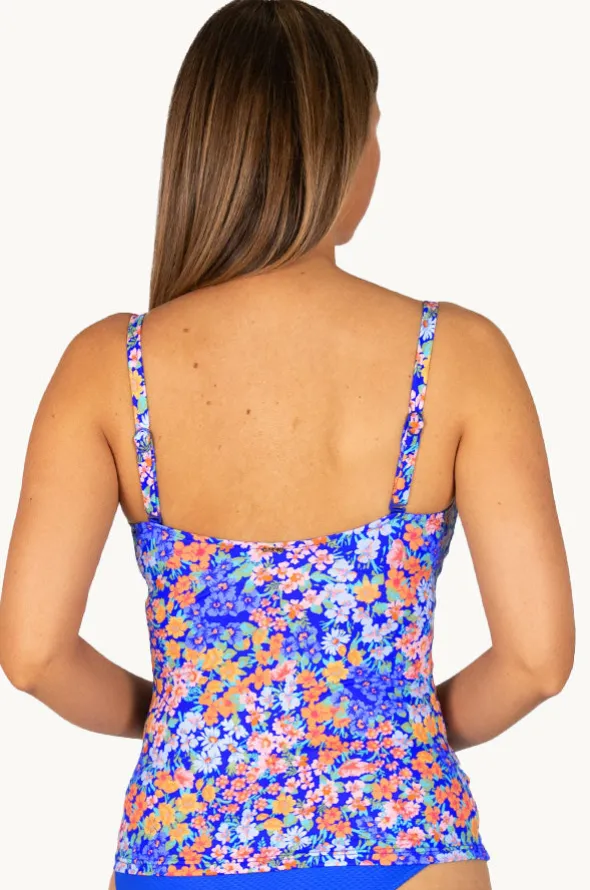 Baku Biarritz D/E Cup Wrap Tankini Separate in Sapphire features a wrap front, underwire, powermesh, adjustable straps, and is best suited to D-E cup sizes.
