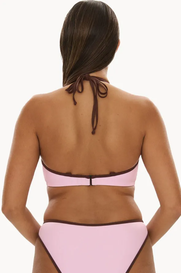 RAQ Bind FF/G Cup Underwire Halter in Floss/Choc features adjustable and convertible straps, underwire, powermesh lining, and is best suited to FF-G cup sizes.
