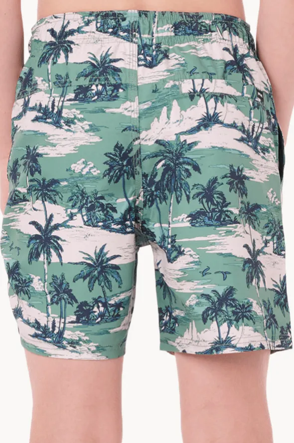 Rip Curl Boys Dreamers Volley Boardshort in Leaf offers an elasticated waistband, drawcord, inseam side pockets, back patch pocket, is available in sizes 8-16.