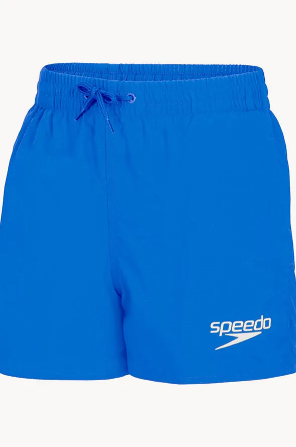 Speedo Boys Essential Watershort in Blue features a 13 inch leg, elasticated waistband, drawcord, sustainable thread, and is available in sizes XS-2XL.