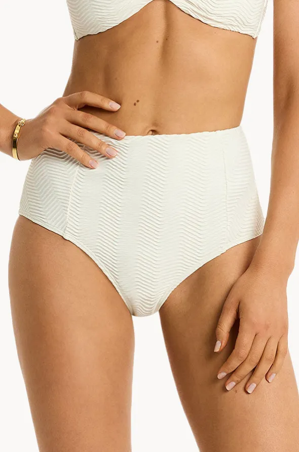 The Sea Level Caracus Panelled High Waist Pant in Coconut features panelled detailing and a high waist fit, designed for sizes 8-16.