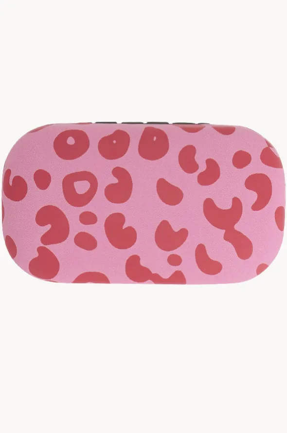 Annabel Trends Cheetah Spot Safe Keeper in Red/Pink features a hardshell case, soft felt lining, and is great for storing valuables.