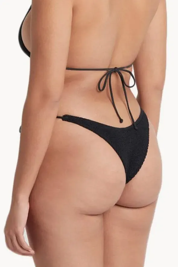 The Bond-Eye Eco Serenity Brief in Black features a raised legline, adjustable tie-side and cheeky coverage, designed in a one size fits all stretch fabric.