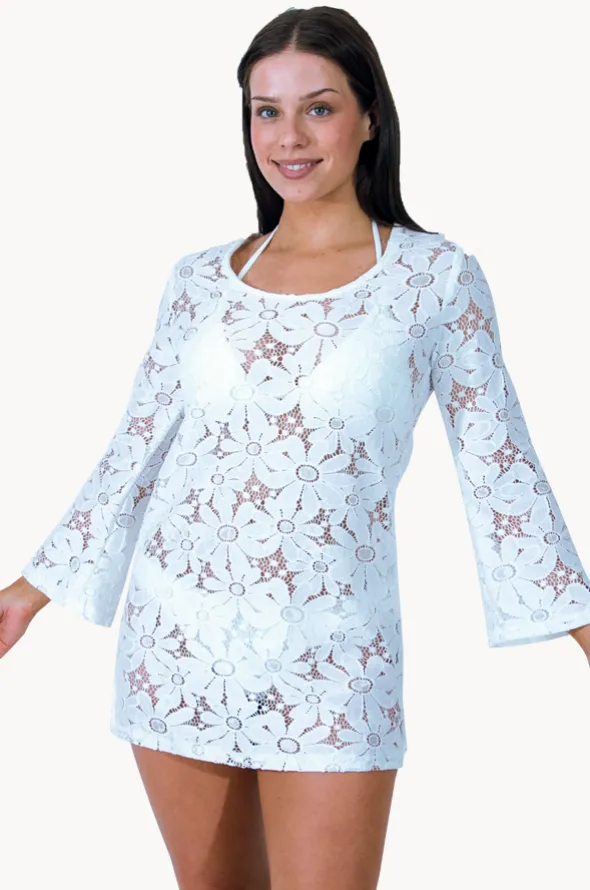J’Valdi Floral Crochet Bell Sleeve Tunic with;