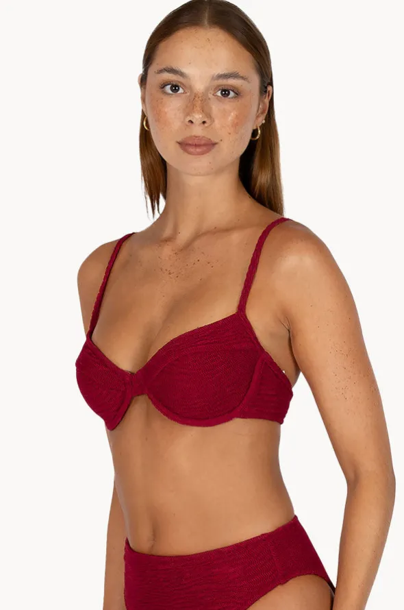 Baku Ibiza B/C Cup Underwire Bra in Scarlet features underwire, removable cups, adjustable straps, back clip, and is best suited to B-C cup sizes.