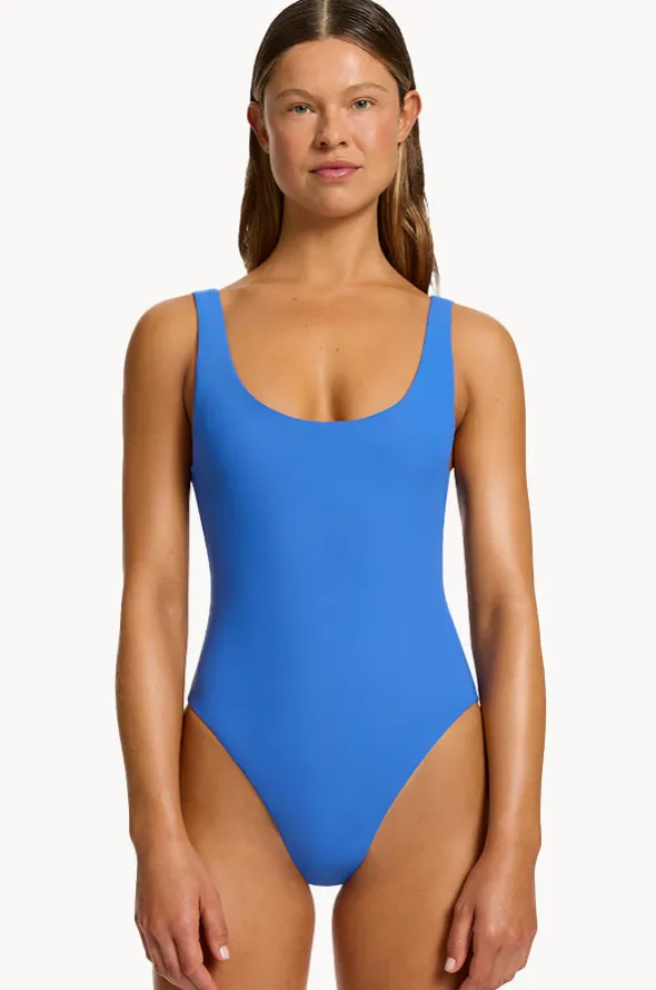 Jets Jetset Scoop Neck High Leg One Piece in tide features scoop neckline, wide shoulder straps, removable cups, and is best suited to B-D cup sizes.