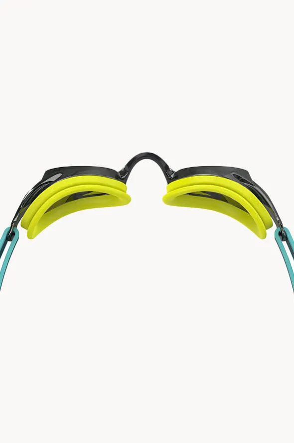 Speedo Junior Vanquisher 3.0 Mirror Goggle in Yellow/Smoke offers a soft eye gasket, UV protection, mirrored lenses, adjustable strap, and is available in O/S.