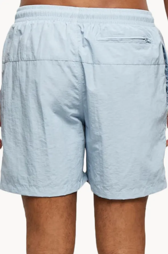 Urban Classics Mens Block Swim Short in Blue features a 5″ inseam, quick-dry nylon, mesh lining, drawstring waist & side pockets.