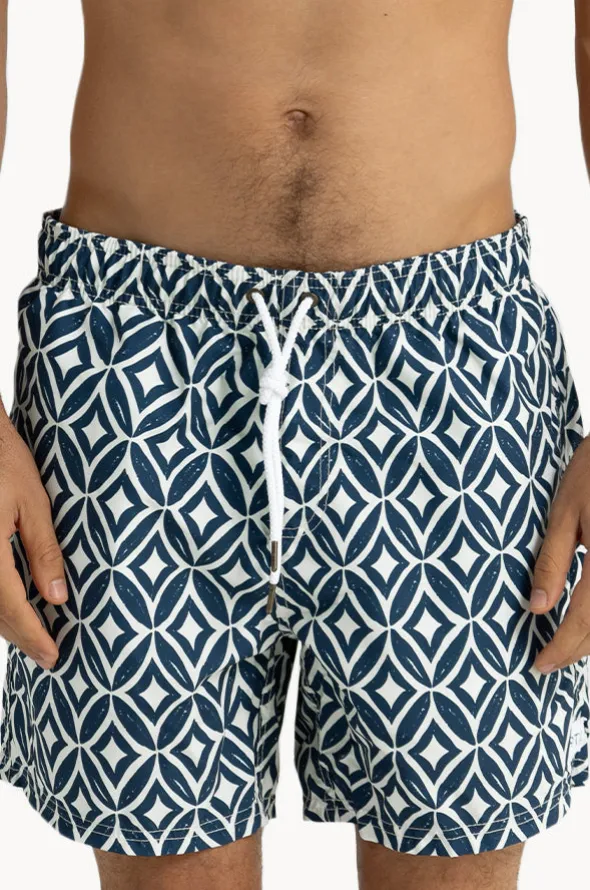 Ortc Mens Cable Boardshort in Navy features an elasticated waistband, drawcord, quick drying fabric, pockets, and is available in sizes S-2XL.