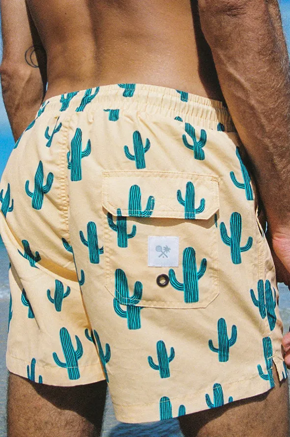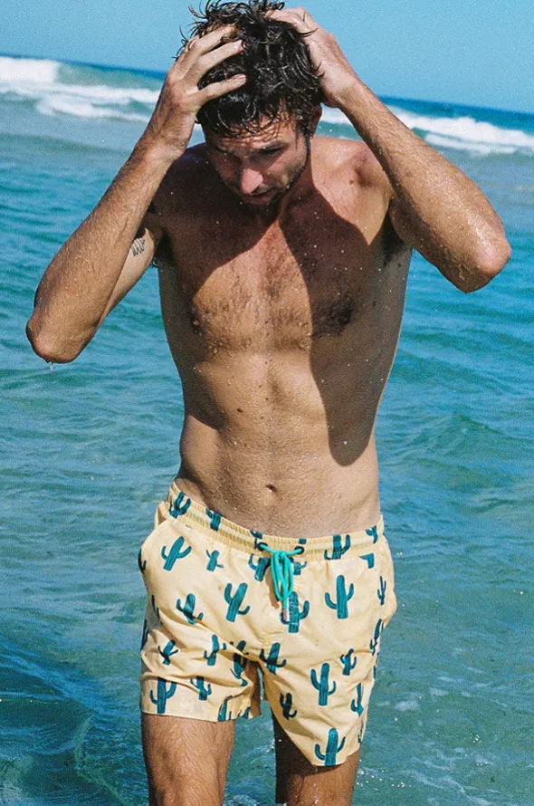 Skwosh Mens Cactus Jack Eco Short in Yellow features an elasticated waistband, drawcord, mesh inner brief, 5 inch inseam, and is available in sizes S-2Xl.