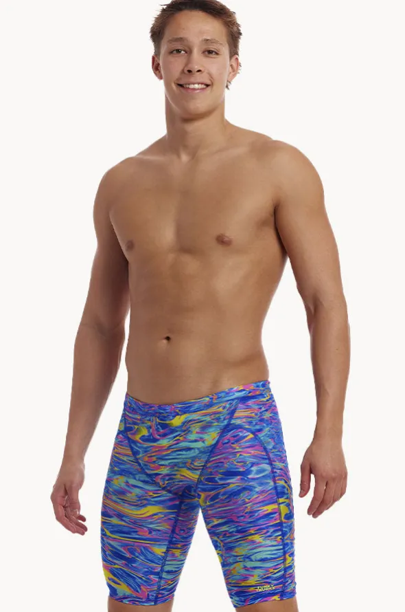 Funky Trunks Mens Stir Crazy Jammer in Multi features elasticated waistband, drawcord, knee length, quick drying, sustainable and chlorine resistant.