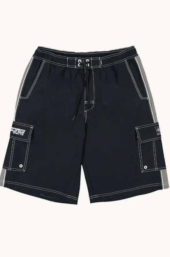 Billabong Mens Throw On 3.0 Boardshort in Black features an elasticated waistband, drawcord, 22 inch length, cargo pockets, and is available in sizes S-XL.