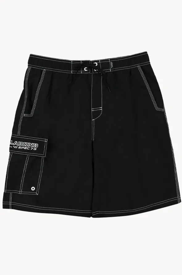 Billabong Mens Throw On Boardshort in Black features contrast stitching, elasticated waistband, drawcord, side patch pocket, and is available in sizes S-2XL.