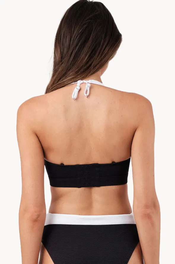 Une Piece Monochrome Texture Original Bustier Balconette in Black/White offers underwire, removable cups, adjustable strap, and is best suited to B-D cup sizes.