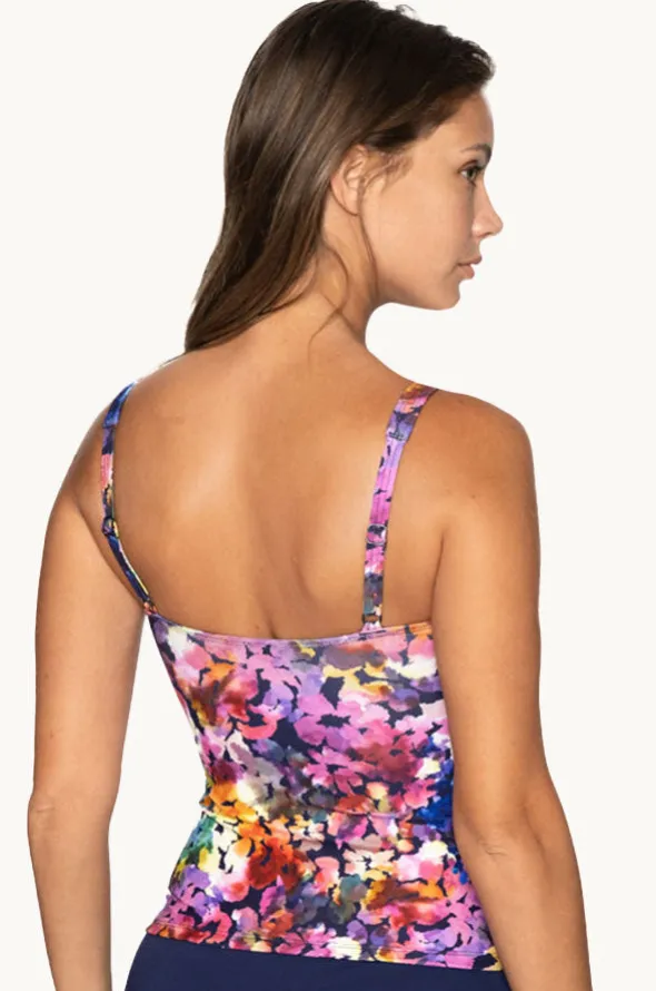 Nip Tuck Petunias Joanne Tankini Separate in Multi offers twist front detail, adjustable straps, moulded cups, powermesh, and is best suited to C-DD cup sizes.