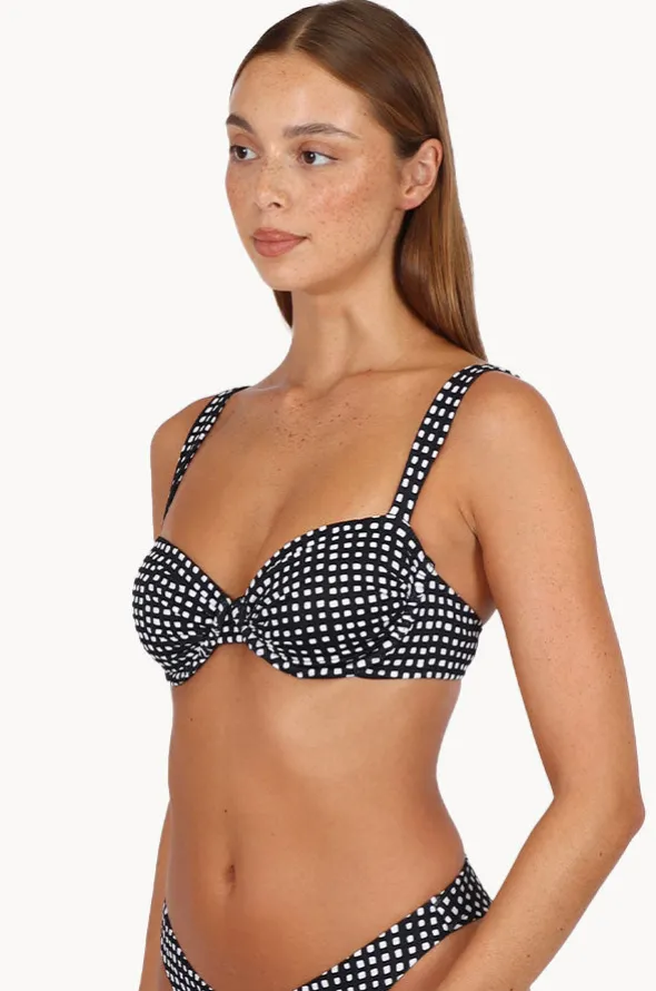 The Baku Picnic Point B/C Retro Demi Bra in Black features retro styling, adjustable straps, and a clasp back, available in sizes 6-14.