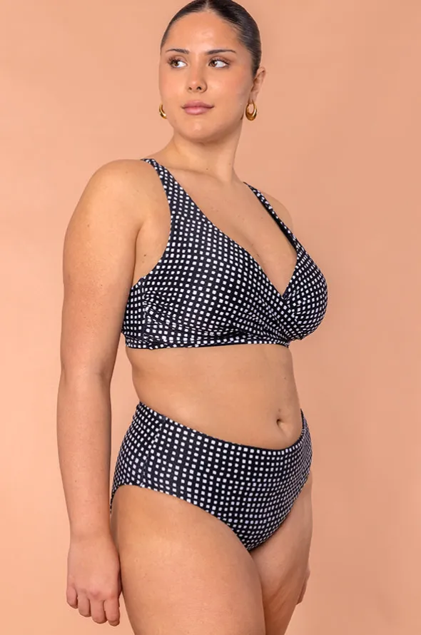 The Baku Picnic Point Mid Pant in Black offers a flattering fit and moderate coverage, available in sizes 8-18.