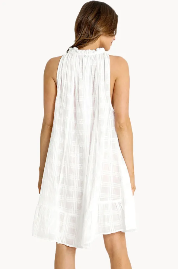 Sunseeker Picnic Throw Over in White features an open neckline with tie and tassel ends, knee length, semi transparent fabric, and is available in sizes XS-L.