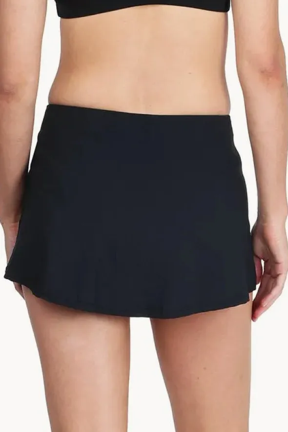 The Base Swim Plain Skirted Pant in Black features an inbuilt brief with skirt overlay for added coverage, confortable fit, and designed in sizes 8-18.