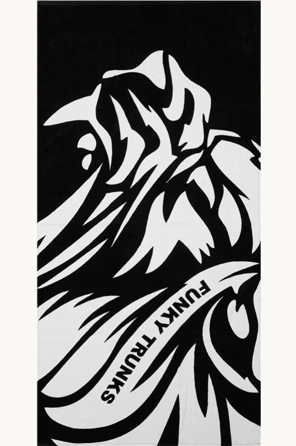 Funky Trunks Roar Energy Towel in Black/White is soft, lightweight and 100% cotton.
