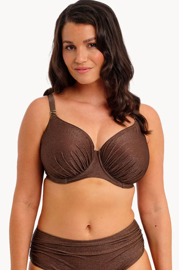 Fantasie Sabana Sparkle G Cup Gathered Full Cup Bra in Chestnut features gathered cups, underwire, adjustable straps, powermesh, is best suited to a G cup size.