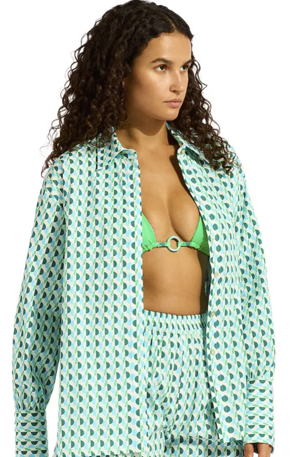 Seafolly Sorrento Oversized Button Up Shirt with;