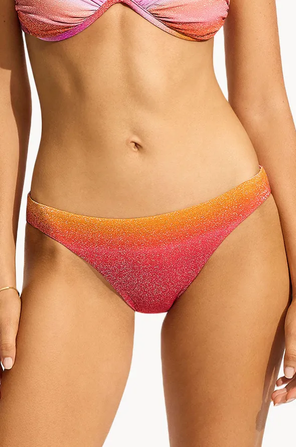 Seafolly Spectrum Hipster in Hot Pink features a regular legline, medium coverage and has metallic sparkle detail.
