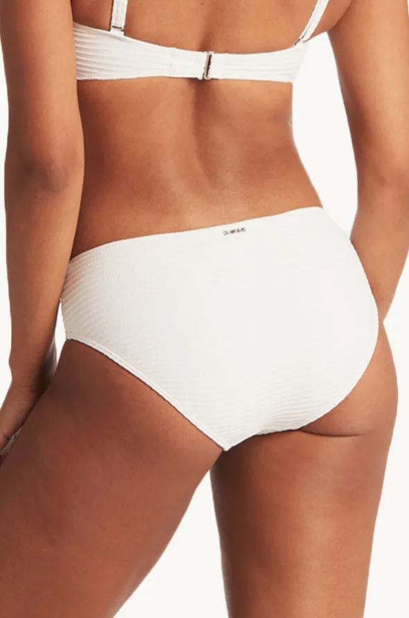 The Sea Level Spinnaker Mid Pant in White features a mid rise fit, powermesh, regular legline, medium coverage, and is made from textured fabric.