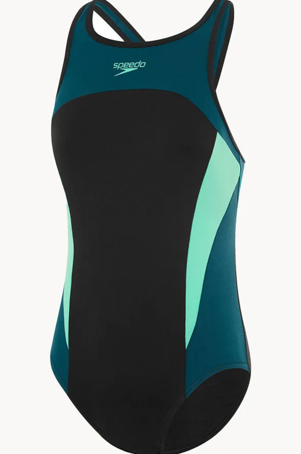 Splice Cross Back High Neck One Piece