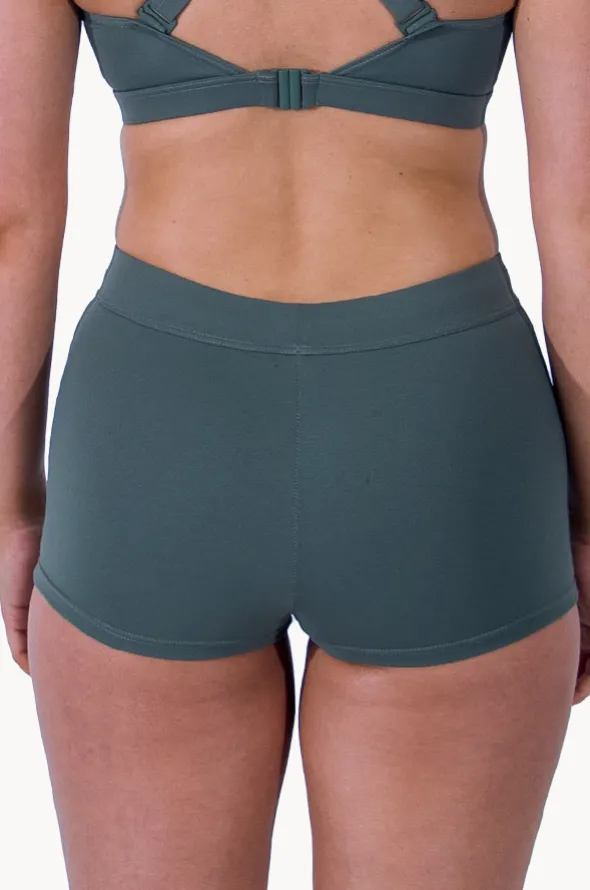 Base Swim Sports Boyleg in Khaki features a high rise waist, low legline, full boyleg coverage, powermesh, chlorine resistant, and is available in sizes 6-22.