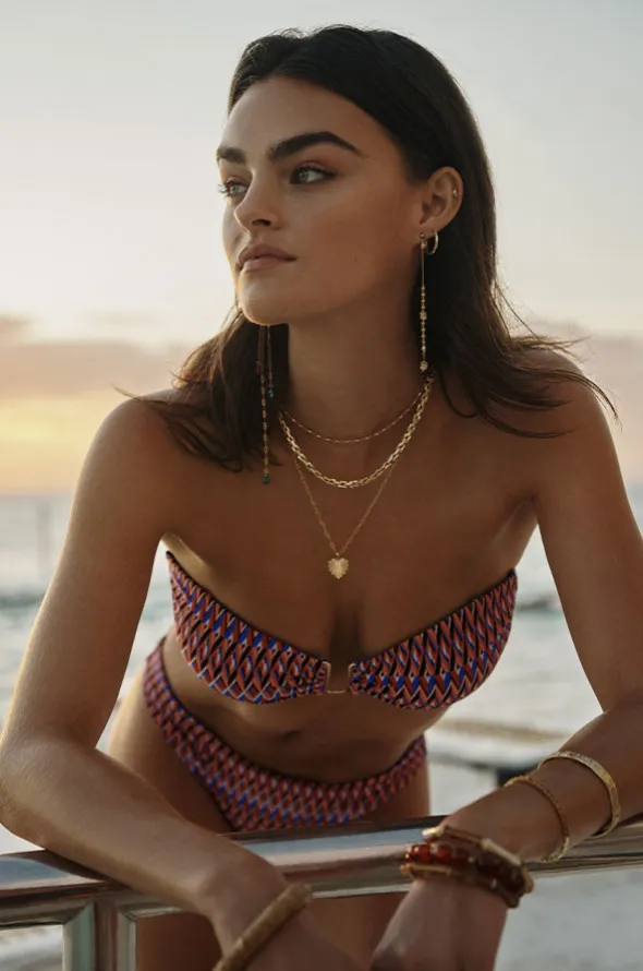 Sea Level Tessera U Bar Bandeau in Blue features a front U-bar detail, removable cups, side boning, optional straps, powermesh, and is designed for B-D cups.