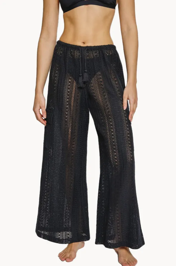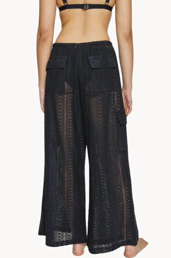Koy Resort Amalfi Cargo Pant in Black features an elasticated waistband with drawcord, side and back pockets, relaxed fit and is full length.
