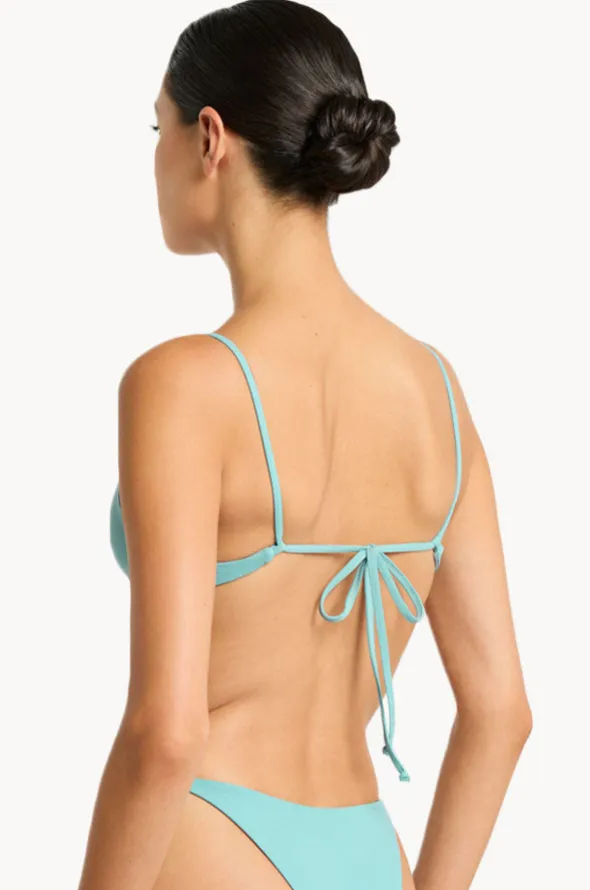 The Bond-Eye Bare Mika Reversible Crop in Cirrus/Moonstone features a bralette style, beading on straps, tie back, and is best suited to A-C cup sizes.