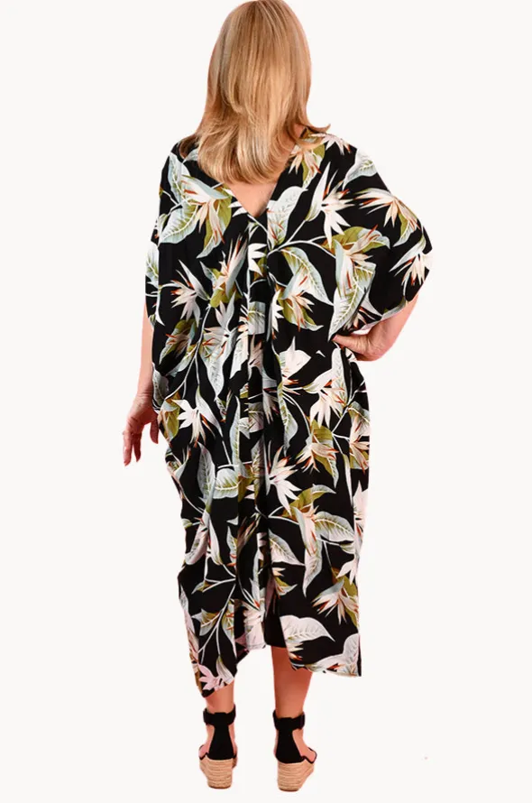 Bodacious Bird Of Paradise Cushla Dress in Black features a V-shaped neckline, splits in sleeves, maxi length, and has a relaxed fit.