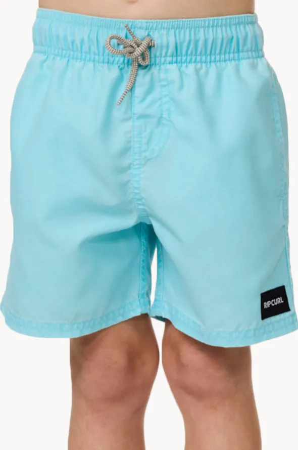 Rip Curl Boys Bondi Volley Boardshort in Light Blue features an elasticated waist, inseam side pockets, back pocket, sustainable, and is available in sizes 3-8.