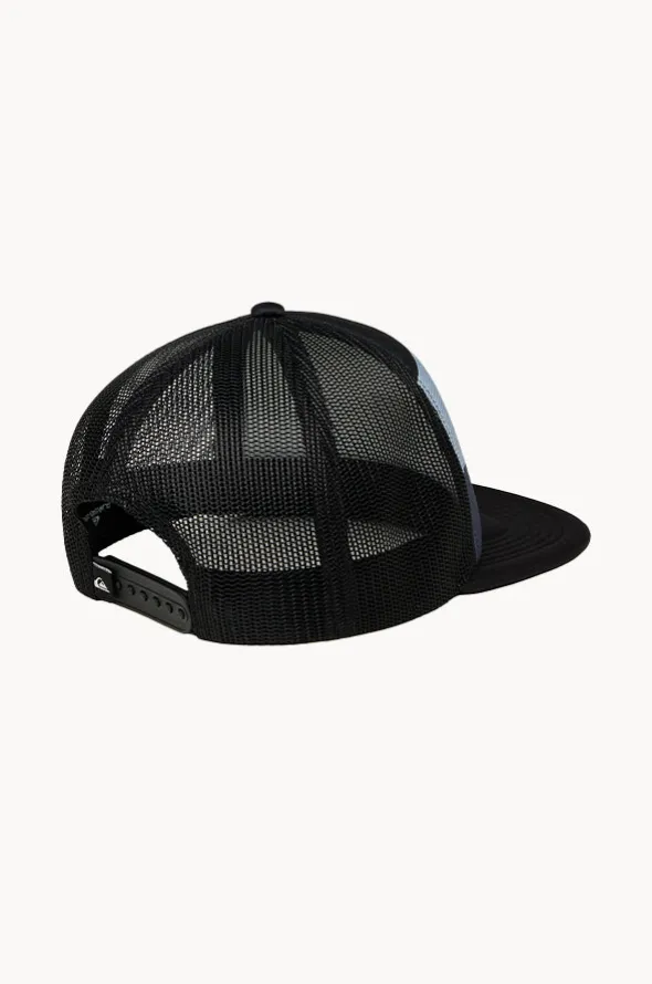 Quiksilver Boys Emu Coop Cap in Black features a peak to reduce glare, adjustable back, foam front panel, breathable mesh, and is available in O/S.