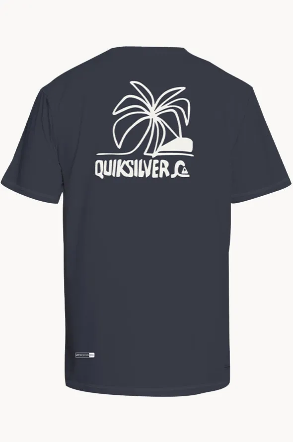 Quiksilver Boys Everyday Surf Short Sleeve Suntop in Ink features a crew neck, long sleeves, sun protection rating, loose fit, and is available in sizes 4-7.