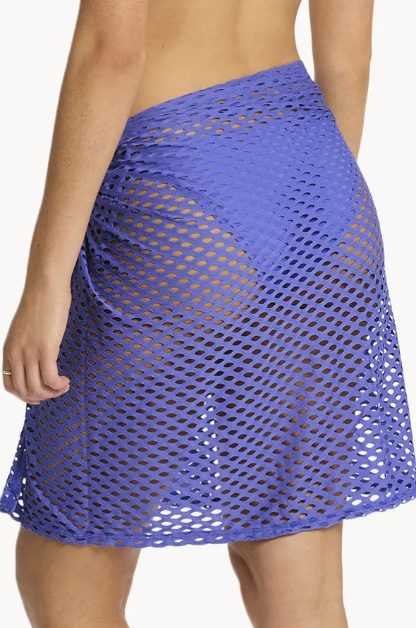 The Sea Level Castaway Mid Length Mesh Wrap in Iris features a mid-length design and breathable mesh fabric, designed for a relaxed fit.