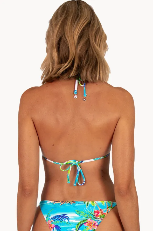Baku Cocos Islands Slide Tri in white features sliding cups for adjustable coverage, removable cups for a round bust shape, and is best suited to A-D cup sizes.