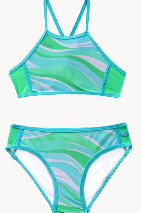 Salty Ink Girls Coastal Wave Crop Set with;