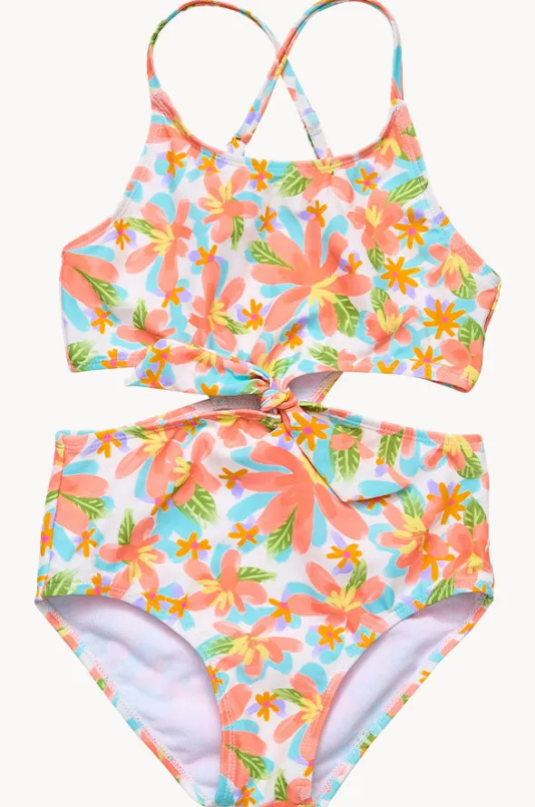 Snapper Rock Girls Hawaiian Luau Cut Out One Piece with;