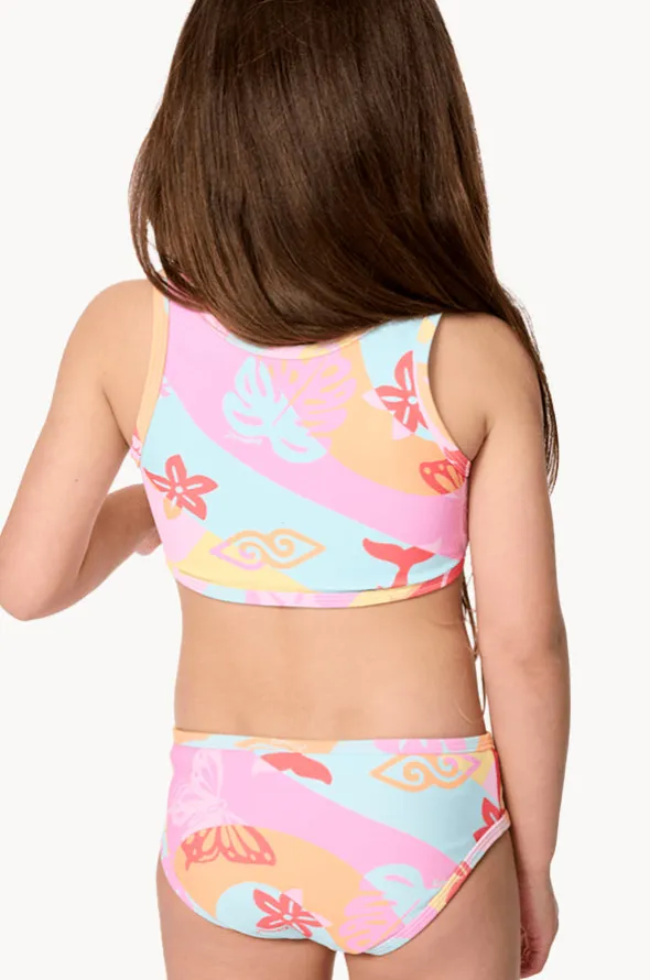 Rip Curl Girls Island Days Crop Set in Multi features a crop style top, fixed straps, matching hipster pant, and is available in sizes 3-8.