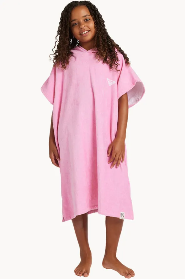 Roxy Girls Sunny Joy Hooded Towel in Bonbon features a hood, Roxy embroidery detail, mid calf length, absorbent fabric, and is available in O/S.