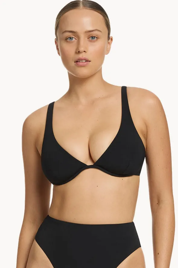 Jets Jetset D/DD Cup Underwire Tri in black features stunning V-shaped neckline, underwire for superior bust support, and is best suited to D-DD cup sizes.