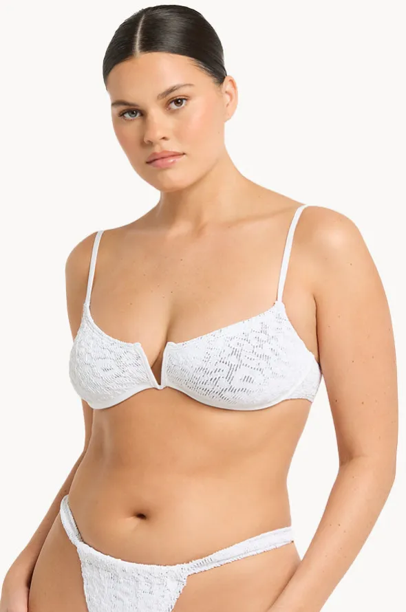 Bond-Eye Leopard Nora Balconette in White features adjustable straps, underwire, sustainable and textural fabrication, best suited to B-D cup sizes.