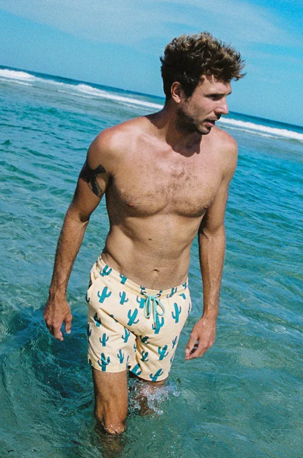 Skwosh Mens Cactus Jack Eco Short in Yellow features an elasticated waistband, drawcord, mesh inner brief, 5 inch inseam, and is available in sizes S-2Xl.
