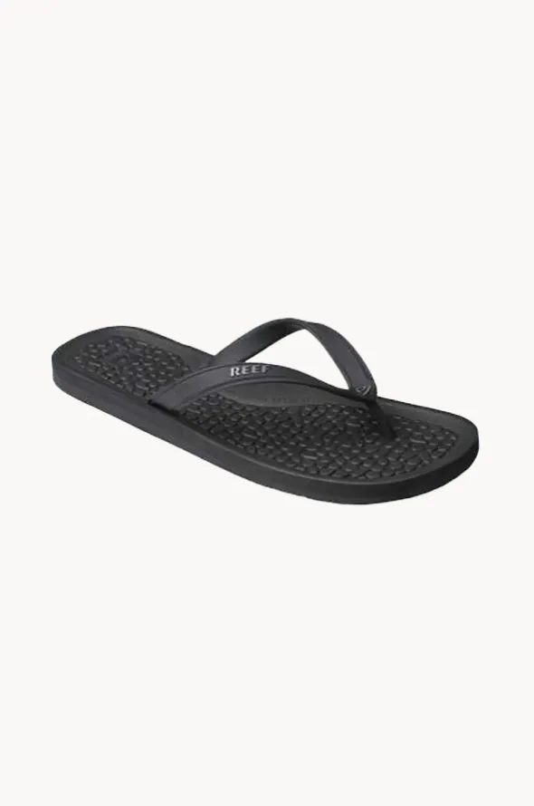 Reef Mens G-Land Thong in Black features a textured footbed, outsole for traction, water-friendly strap, available in sizes 8-12.