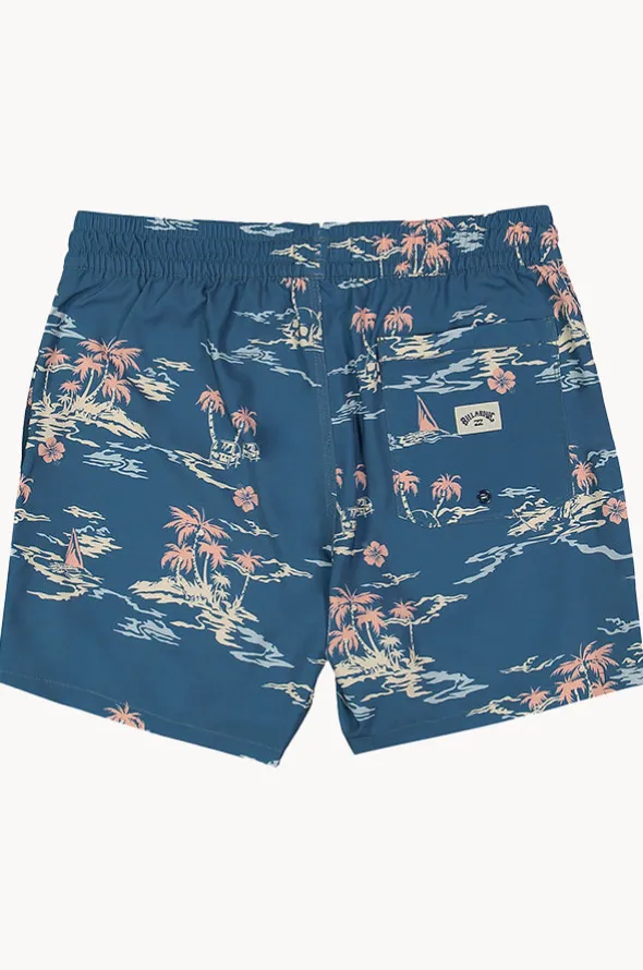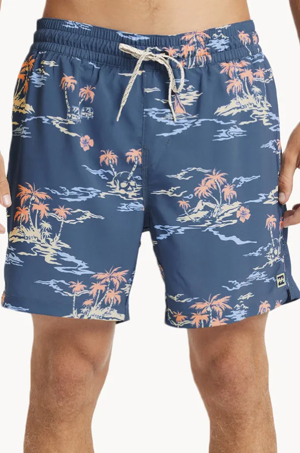 Billabong Mens Lineup Boardshort in Teal features an elasticated waistband, drawcord, 17 inch length, compression lining, and is available in sizes S-XL.