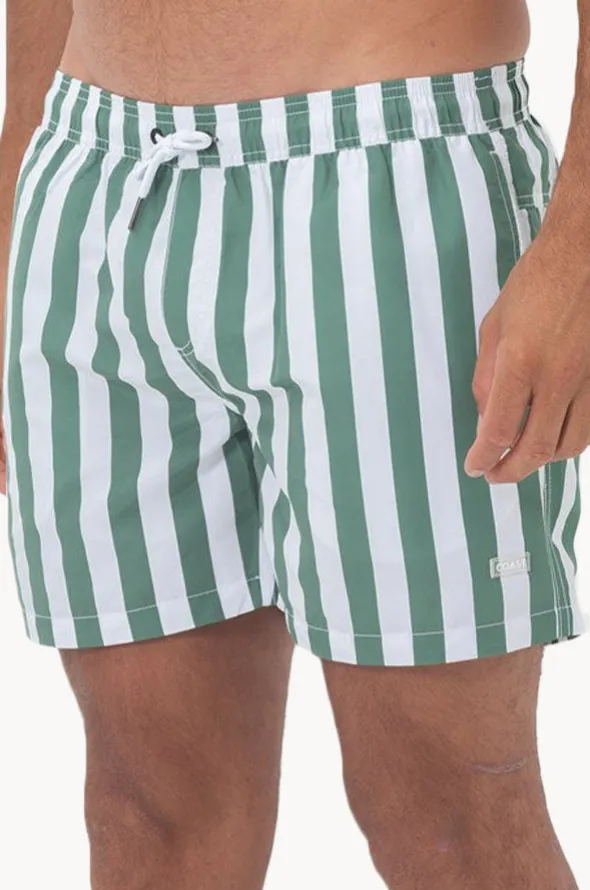 Coast Mens Madeira Swim Short in Green features an elasticated waistband, drawcord, inner mesh brief, side pockets, back pocket, is available in sizes S-2XL.